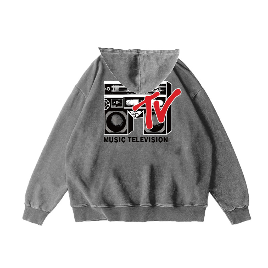 The ZeitStitch MTV Boombox Pigment-Dye Hoodie revives 80s street spirit through texture and tone. Featuring the iconic MTV logo transformed into a boombox graphic, it fuses music history with modern streetwear. Each hoodie is pigment-dyed for a vintage fade and crafted from heavyweight cotton fleece — soft, relaxed, and built for creative souls who move to their own rhythm.