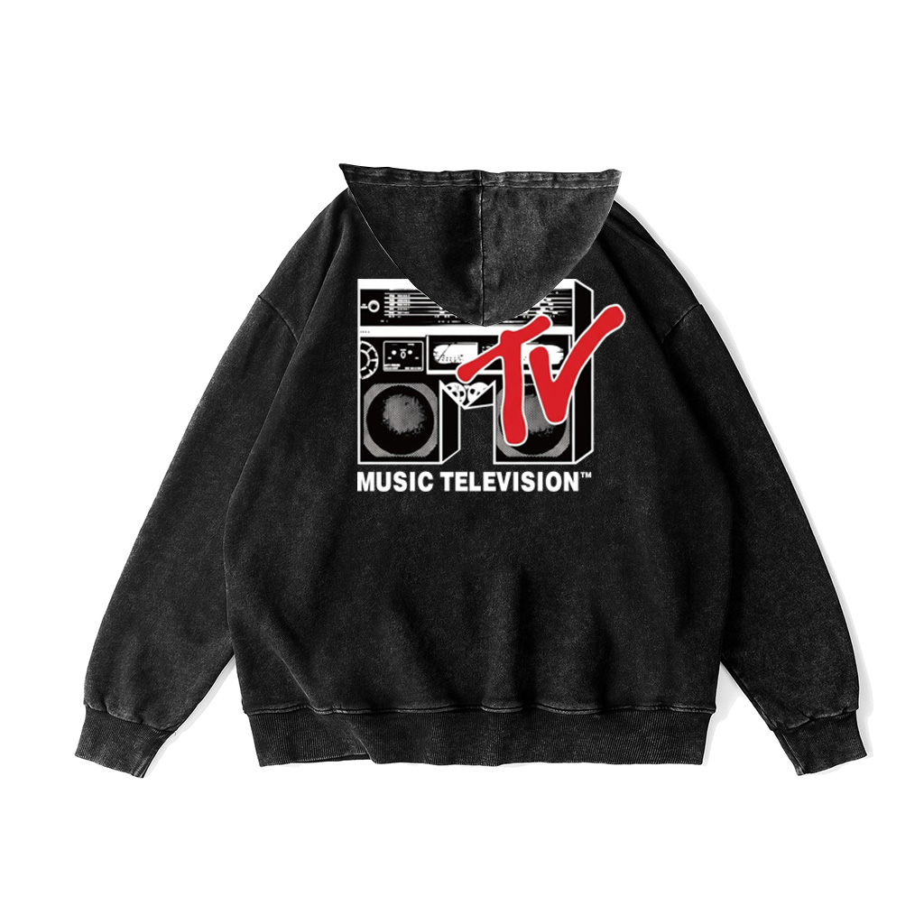 The ZeitStitch MTV Boombox Pigment-Dye Hoodie channels the raw analog energy of the 80s — a tribute to the era when music was bold, loud, and impossible to ignore. The legendary MTV “M” becomes a detailed boombox design, packed with old-school speaker grills and cassette knobs, overlaid with a striking red “TV” — a symbol of creativity that changed culture forever.