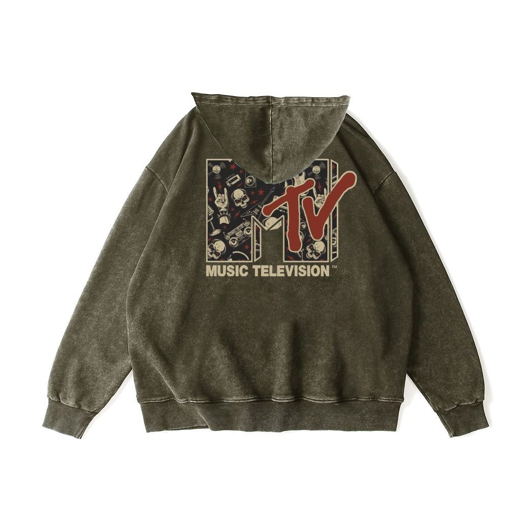 The ZeitStitch MTV RetroWave Pigment-Dye Hoodie is a modern tribute to the untamed energy of the original MTV era — a time when creativity was raw, sound was rebellious, and streetwear became culture. Its oversized backprint showcases the legendary MTV emblem filled with guitars, skulls, boomboxes, and lightning bolts, celebrating the heartbeat of 80s and 90s music freedom.